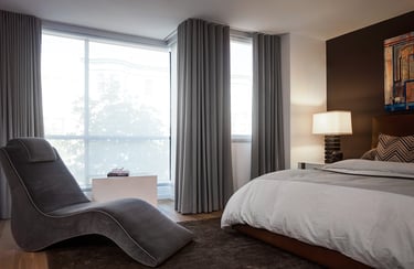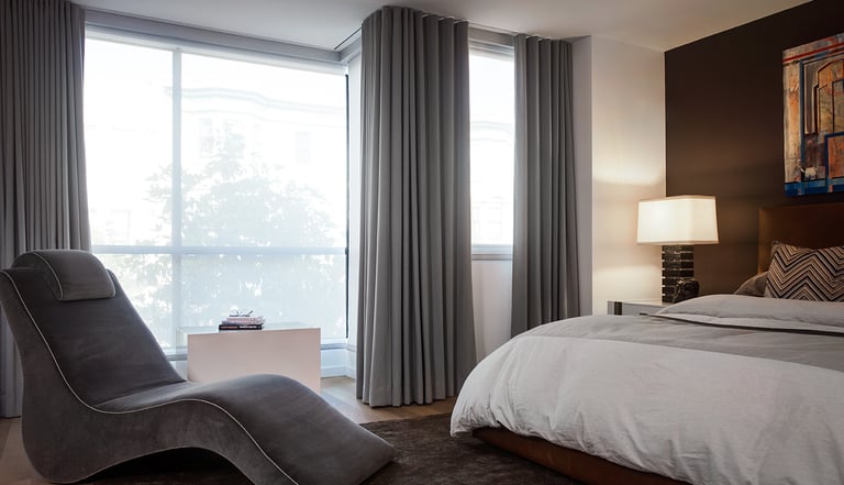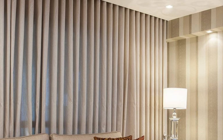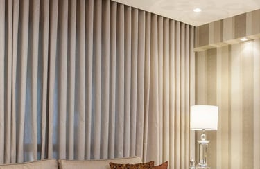 Cortinas e Persianas, nas opções com e sem motor. Com automação já embutida no pacote de produtos e serviços. A mais completa elegância e sofisticação.